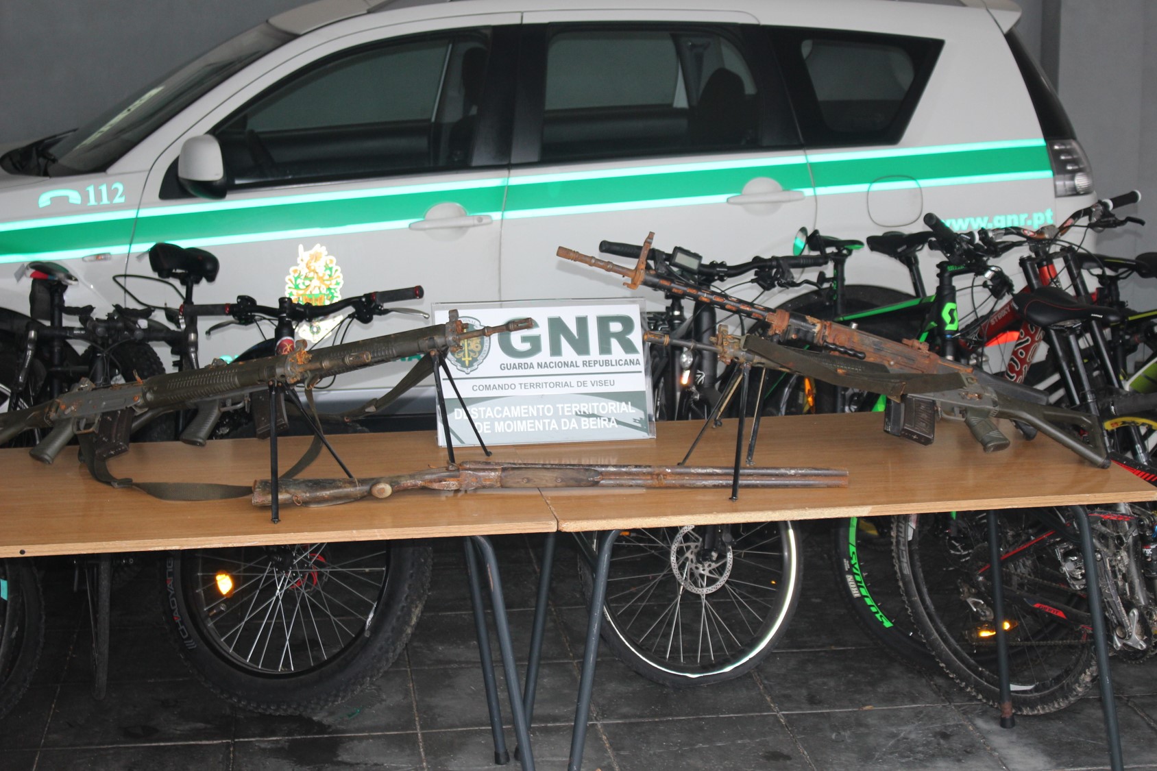 Salienta-se que as armas tinham sido furtadas ao Exército Suíço e encontravam-se enterradas próximo das residências de dois arguidos que atualmente estão presos na Suíça, enquanto que as inúmeras bicicletas, também furtadas na Suíça, se encontravam dispersas por diversas garagens e armazéns.