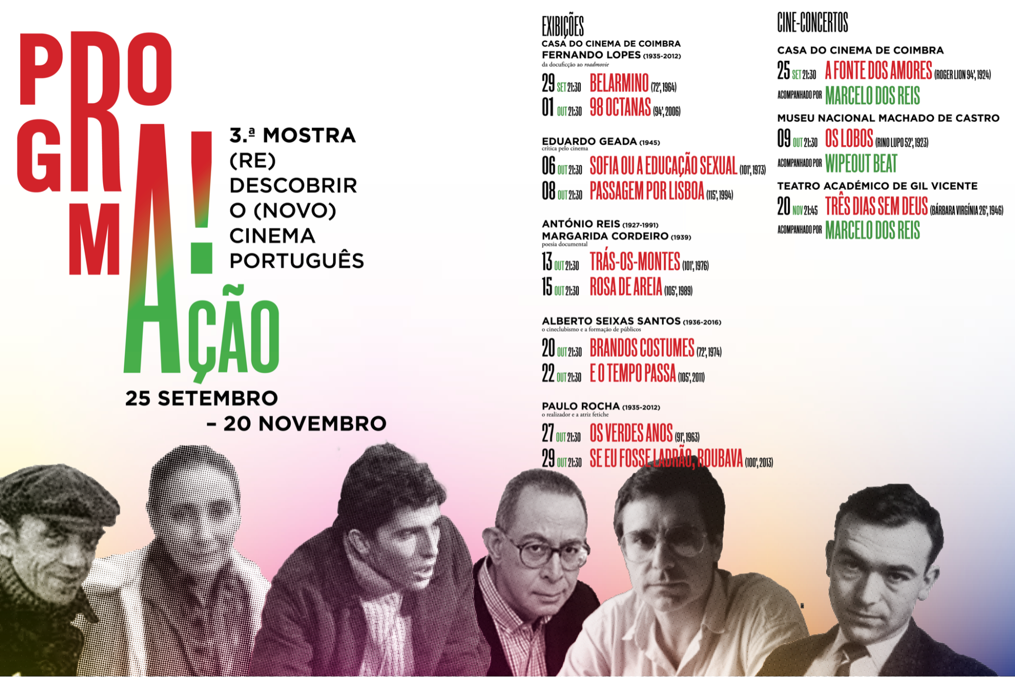 Entre 29 de setembro e 20 de novembro, a 3.ª edição da Mostra Programa!ação vai recuperar a obra de cinco realizadores marcantes do Novo Cinema Português: Fernando Lopes, Eduardo Geada, António Reis e Margarida Cordeiro, Alberto Seixas Santos, e, Paulo Rocha, permitindo o visionamento comparatista entre as obras iniciais, elementos marcantes do Novo Cinema, com obras mais tardias. Nesta 3.ª edição, optou-se por uma curadoria que olha aos factores de diferenciabilidade do nosso património cinematográfico num contexto de progressiva digitalização do seu acervo, para que numa mostra de conjunto se possam constituir elementos relevantes para a compreensão da cinematografia nacional, da sua evolução estético linguística e de como à luz de uma época de poucas liberdades e recursos se ousou construir uma representação da realidade e das transformações sociais de Portugal.