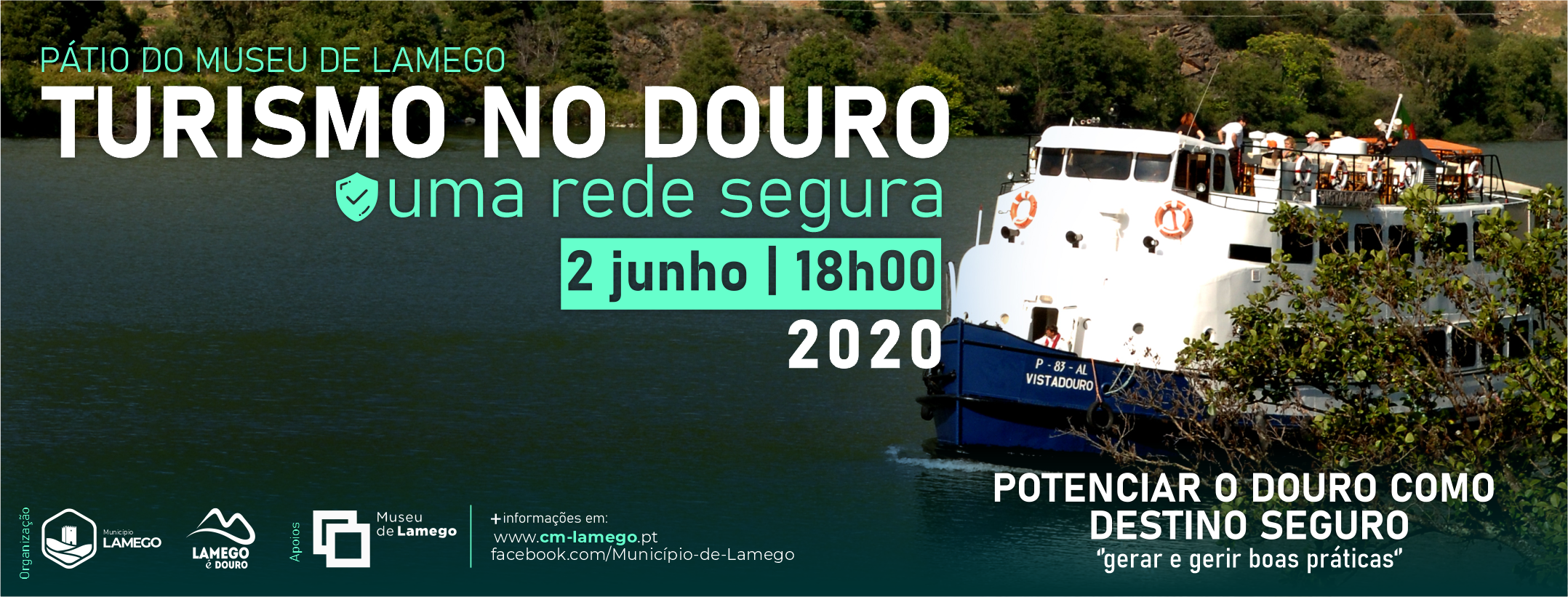 Devido às condições climatéricas previstas para hoje, dia 2, a conferência “Turismo no Douro – Uma Rede Segura” dirigida a todos os profissionais do setor não decorrerá no Pátio do Museu de Lamego, conforme inicialmente previsto, sendo transferida para o Teatro Ribeiro Conceição. Esta iniciativa será ainda transmitida em “streaming” no YouTube, a partir das 18 horas, com o objetivo de chegar a um maior número de participantes, através do link https://www.youtube.com/ watch?v=mJQuJJ1wSuY